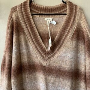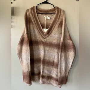 NWT A.N.A Brown Striped Pullover V-neck Sweater Size 2X