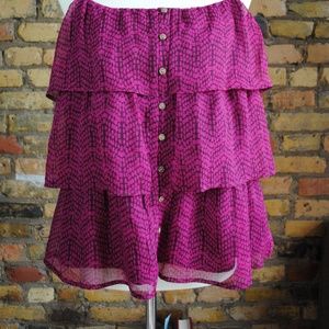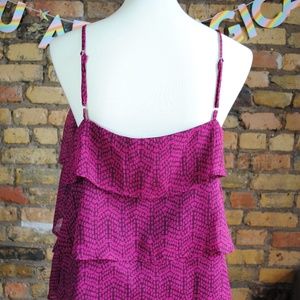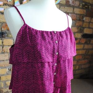 Super cute tank with layered ruffles, front button details, and adjustable straps in deep fuchsia color. Fully lined - NWT