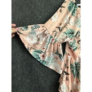NWT ANA Ruffle Sleeve Floral Top L Boho Peasant Beachy Flowy