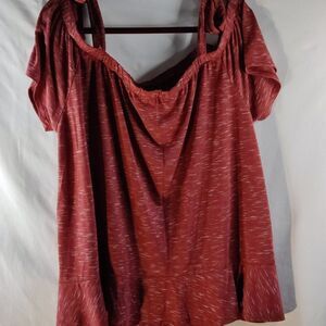 NWT A.N.A Tie Cold Shoulder Ruffle Top Blouse A New Approach Western Red Women's Size L