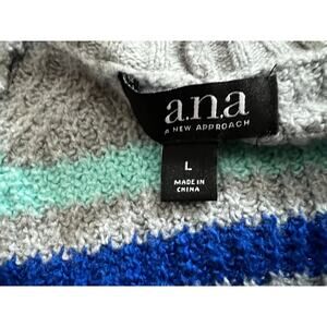 NWT A.N.A. Womens Gray Multicolor Striped V-Neck Pullover Sweater L MSRP $44