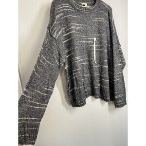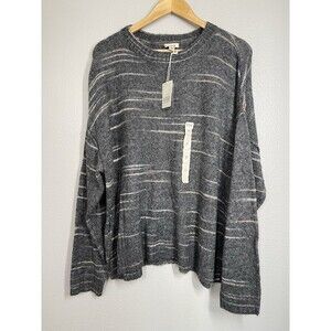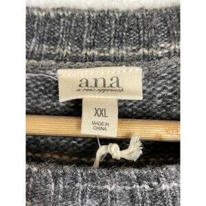 NWT A.N.A. Women's XXL/2X Long Sleeve Sweater Gray W/beige Stripes Cozy Fall NEW