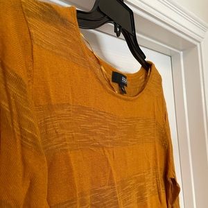 NWT ANA long sleeve lightweight sweater top size Large in golden yellow with shadow stripes. Light weight. Always kept folded, no ‘hanger’ marks.