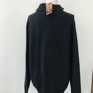 ANAPO Wool Sweater. Size: XL. 24" underarm to underarm. 29-30" length. Two-tone (Navy and Gray collar). New with tags. Fabric tag pictured. Smoke free home.