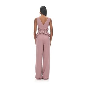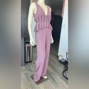 NWT ANDREA IYAMAH Vera Ruffle Statement JUMPSUIT Mauve Pink Size XS