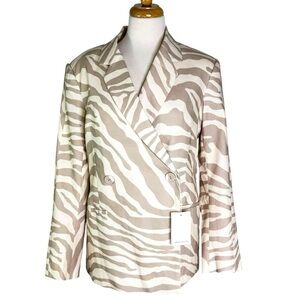 Linen, blazer, zebra, neutral, oversized, cotton, natural fibers, animal print, jacket, designer