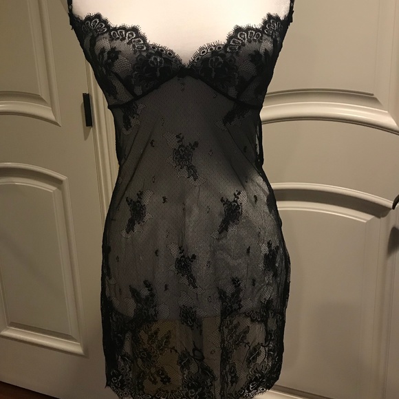 NWT ANN SUMMERS CHEMISE / NEGLIGEE BLACK LACE