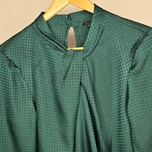 NWT ANN TAYLOR Emerald Green Houndstooth Check Women's Longsleeve Blouse Size XS