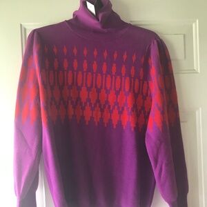 NWT - ANN TAYLOR - Fair Isle Turtleneck Balloon Sleeve Sweater size L