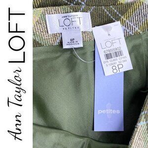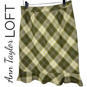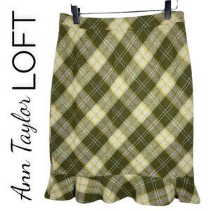 NWT ANN TAYLOR LOFT Green Plaid Wool Blend Ruffle Pencil Skirt, Size 8P
