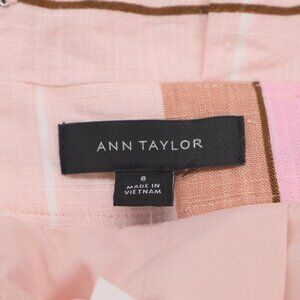 NWT ANN TAYLOR Linen Blend Plaid Tie-Waist Pencil Skirt Pink Multi Size 8