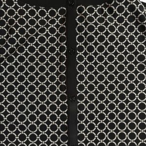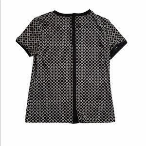 Anne Klein Short Sleeve Geometric Print Blouse, Brand New with Tags! Size Small, Allover black, gray, and white geometric print, black trim at sleeves and collar, button down back