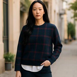 NWT ANNE KLEIN GREEN PLAID BUTTON DOWN INSERT SHIRT SWEATER GREEN SMALL