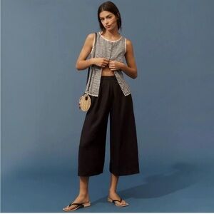 NWT ANTHROPOLOGIE Black Wide Leg Cropped Linen Pant, XL