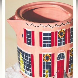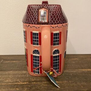 NWT ANTHROPOLOGIE Christmas Chalet Teapot Holiday House Pink Red