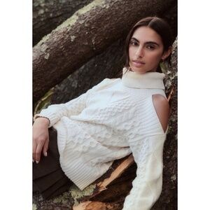 NWT!! ANTHROPOLOGIE Cold Shoulder Cable Knit Turtleneck Sweater Pullover X-Small