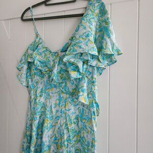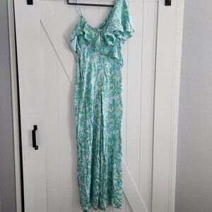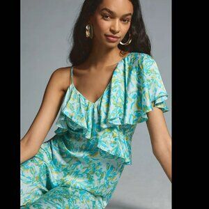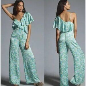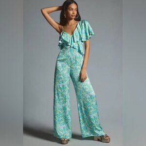 NWT ANTHROPOLOGIE Corey Lynn Calter Silky Ruffle Wide-Leg Jumpsuit M