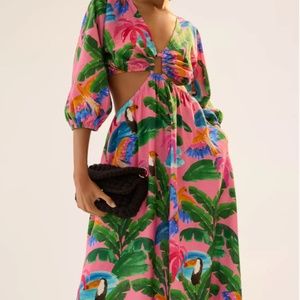 NWT ANTHROPOLOGIE FARM RIO PRINTED V-NECK CUTOUT DRESS