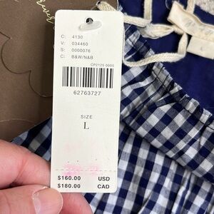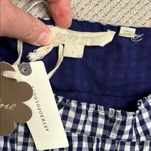 This Anthropologie skirt features a charming blue and white gingham pattern, perfect for adding a touch of classic style to your wardrobe. The lightweight fabric ensures comfort and ease of movement, making it an ideal choice for any casual outing. With its solid navy blue waistband, this skirt offers a flattering fit and a timeless look.