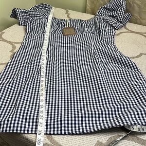 NWT ANTHROPOLOGIE FOREVER THAT GIRL PUFF SLEEVE MINI DRESS BLUE GINGHAM LARGE