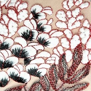 Floral embroidery on mesh bodice