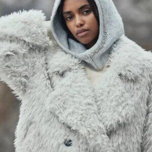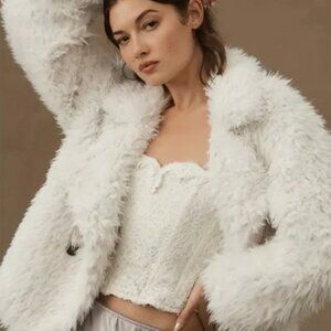 NWT ANTHROPOLOGIE OVERSIZED WHITE FAUX FUR JACKET LARGE