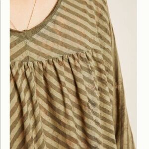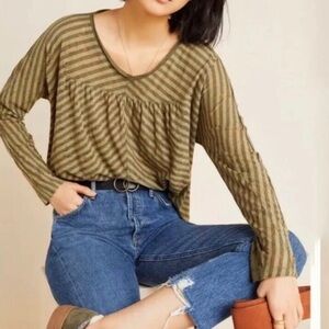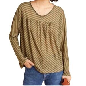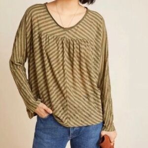 NWT ANTHROPOLOGIE Pilar Army Olive Green Striped Top Size Small