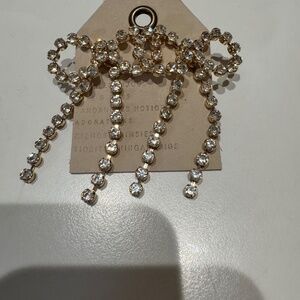 NWT ANTHROPOLOGIE RHINESTONE BOW EARRINGS/ GOLD