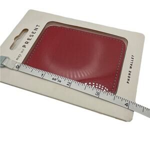 Classy and functional red leather Anthropologie phone wallet. Wallet holds up to 4 cards and fits most phones. New in packaging! About 3.5in x 2.75in
