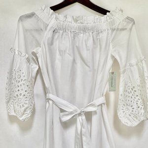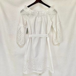 NWT ANTHROPOLOGIE White Eyelet Cotton Spring Mini Tie Waist Graduation Dress 2P