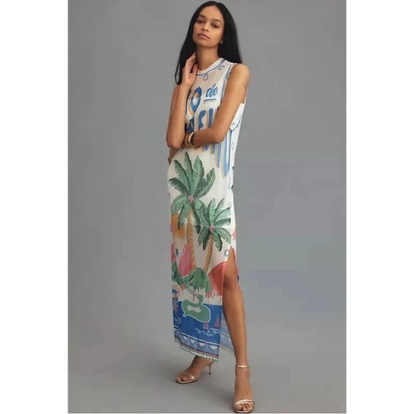 NWT ANTHROPOLOGIE x FARM RIO Graphic Mesh Tropical Midi Dress Size XS