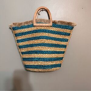 NWT ANTIK KRAFT Hashree Tote bag made with 100% Jute in turquoise stripe