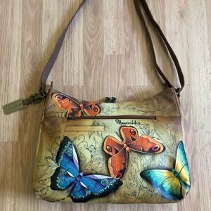 NWT ANUSCHKA India Hand-Painted Leather Butterfly Purse Shoulder Bag