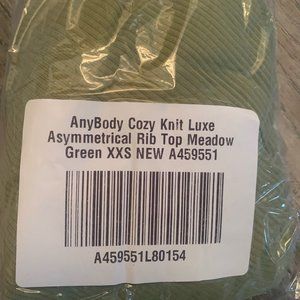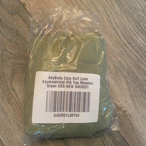 NWT (NEW IN BAG) ANYBODY COZY KNIT LUXE ASYMMETRICAL RIB TUNIC TOP MEADOW GREEN SIZE XXS.