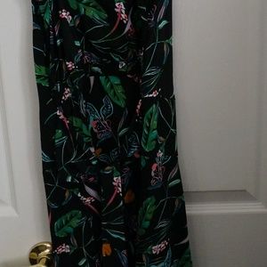 NWT A.New.Day Strap dress in xs. Black with floral and leaves detail V-neck. Asymmetric hem. Non removable tie for a tighter fit. Side zipper.