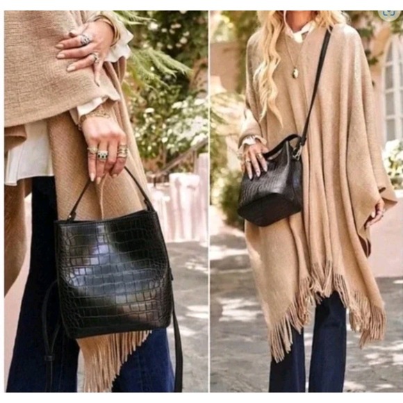 Keywords: bucket bag, vegan leather, croc embossed, PETA approved, cruelty free, ethical fashion, designer inspired, structured bag, versatile strap, evening bag, brunch bag, everyday bag, chic, sophisticated