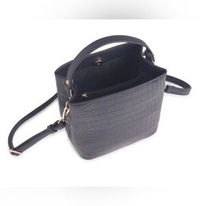 NWT AOTA Elena Bucket Bag - Black Faux Crocodile