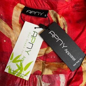 NWT APNY Apparel Women's Blouse Red with Gold Circles Bell Sleeve Tie Front S NEW! Gorgeous! Looks like silk. See photos for details and measurements. Shop my closet to combine other items for one shipping charge!