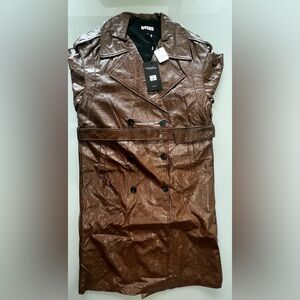Add a luxe touch to any look with this head-turning trench featured in a staple, longline silhouette and stunning faux leather fabrication with exaggerated collar, button-front closure, and waist tie closure for added shape.