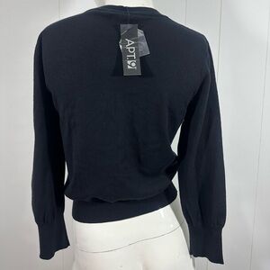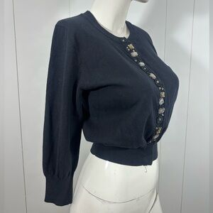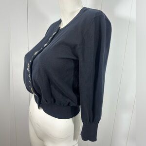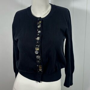 NWT APT 9 Sz M CARDIGAN SWEATER BLACK BUTTON UP BEADED/JEWELED 3/4 SLEEVES