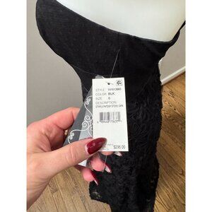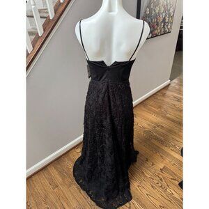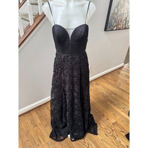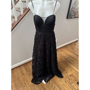 NWT AQUA Strapless Soutache Rosettes Tulle Floral Applique Black Gown Size 0