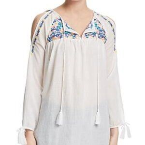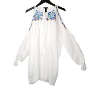 NWT AQUA White Embroidered Long Sleeve Boho Tunic