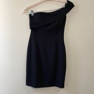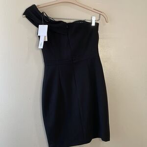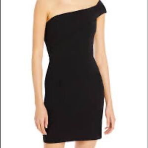 NWT AQUA One shoulder black scuba crepe dress size 2