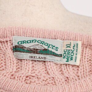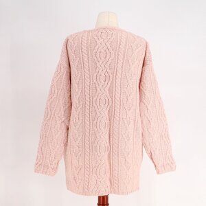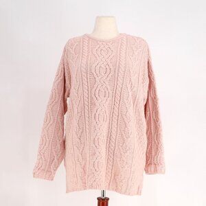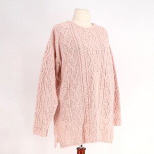NWT ARAN CRAFTS Merino Wool Cable Knit Crew Neck Sweater Pale Pink Size XL