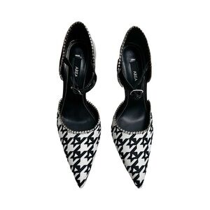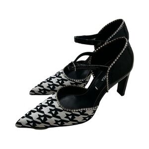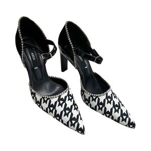 NWT AREA Pointy Toe Crystal Canvas Patent Leather Orsay Heels Sz 9