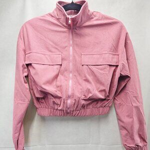 NWT AREA STARS Waffle Knit Crop Lightweight Front Zip Jacket Mauve Pink Small