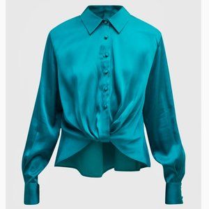 NWT ARIAS New York Twist-Front Blouse in Teal
