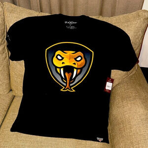 NWT ARIAT Men Texas Rattlers Head Blk Short Sleeve 100% Cotton Graphic Shirt LG