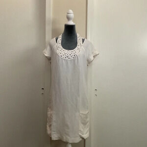 🔷 NWT ARMANI EXCHANGE Embellished White Linen Shift Dress