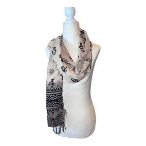 NWT ART STUDIO COMPANY Fish Design Gray Viscose Fringe Scarf